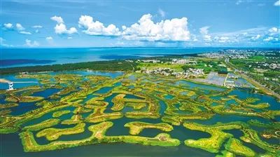 以“湿地+退塘还林(湿)模式”建设海口迈雅河区域生态修复项目,着力打造退塘还林(湿)样板工程,高质量建成江东新区首个滨海生态休闲区。