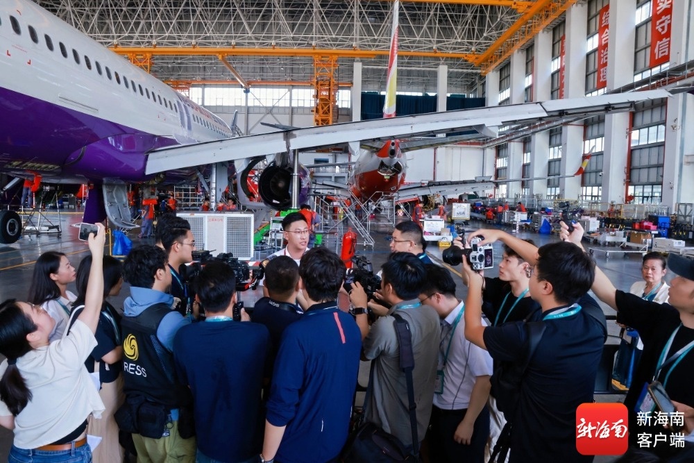 中外媒体首站探访海南自贸港一站式飞机维修产业基地