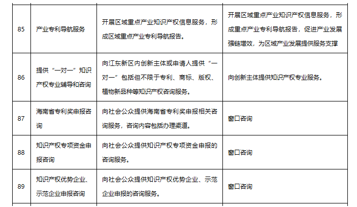 江东新区知识产权公共服务窗口建设以来,始终以“服务创新、赋能发展”为宗旨,联合海南师范大学国家大学科技园技术与创新支持中心(TISC)等优质平台不断拓展服务边界、提升服务质效。现已构建起覆盖知识产权创造、管理、运用、保护、服务五大类共90项服务的全链条体系,可为企业和个人提供“一站式”专业服务!