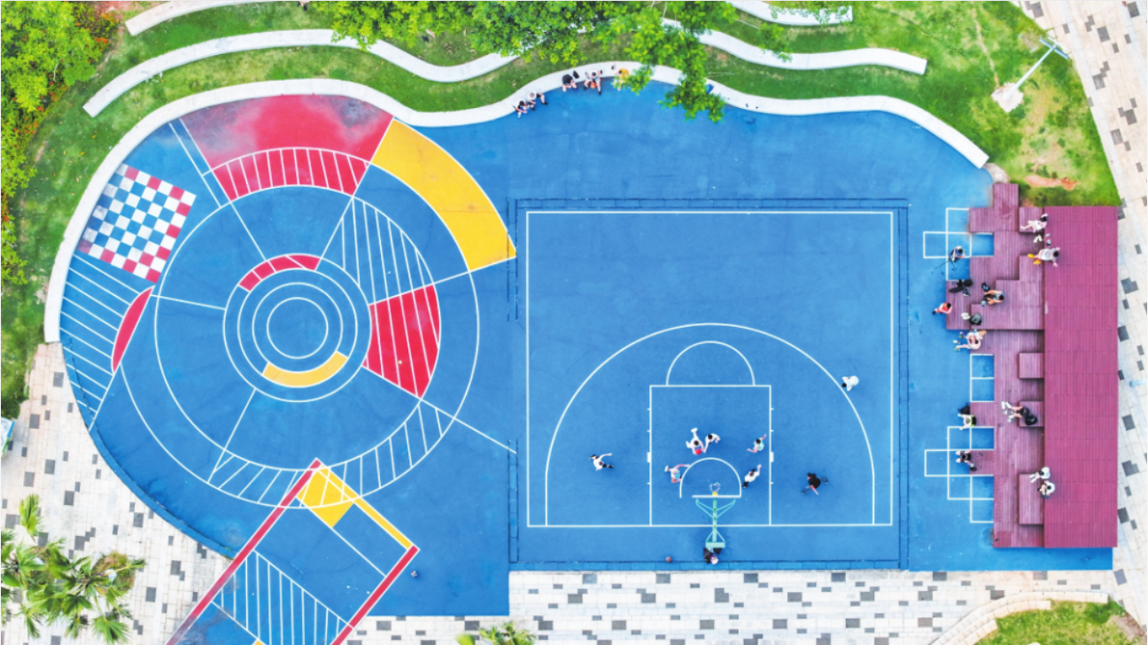 俯瞰海口湾公园(龙华段)设计感十足的篮球场。海口市融媒体中心记者康登淋 摄