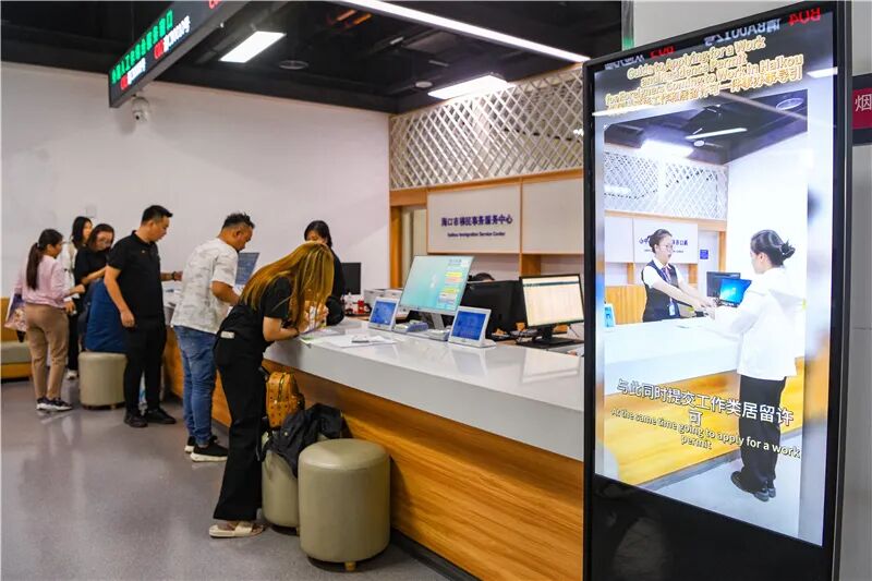 图为海口市政务服务大厅外国人工作综合服务窗口,方便外国人在海南办理相关业务。苏弼坤 摄