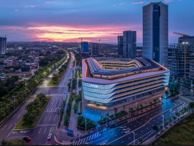 位于海口江东新区总部经济区(生态CBD)核心中轴线的江东发展大厦项目,创新采用四栋主体建筑围合而成的花园式写字楼群设计,通过现代建筑语言与生态理念的有机融合,打造成为集高端商务办公、综合政务服务、创新企业孵化及配套商业于一体的现代化商务综合体,为江东新区高质量发展注入全新动能。