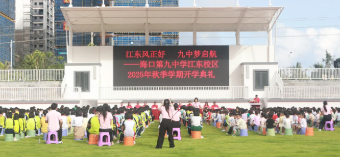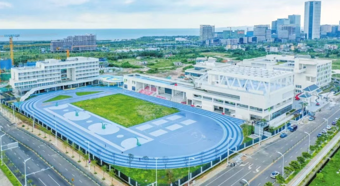 今年9月开学的海南中学江东校区与海口市第九中学江东校区内书声琅琅,宽阔的操场上身影跃动,孩子们已经适应了新的学习旅程。