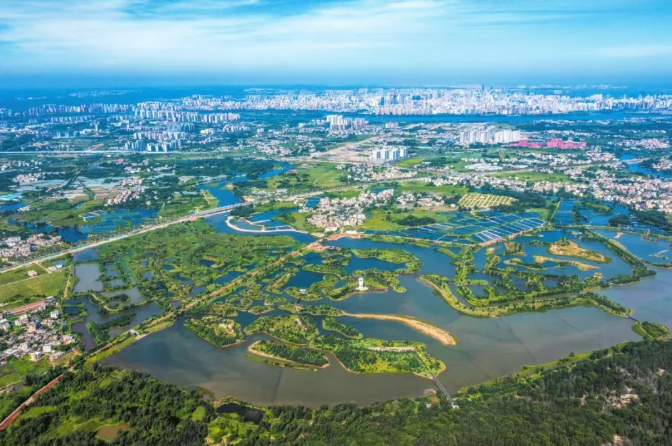 位于海口江东新区的道孟河湿地公园,风光旖旎、绿意盎然,为在周边工作生活的群众提供了休闲健身的好去处。