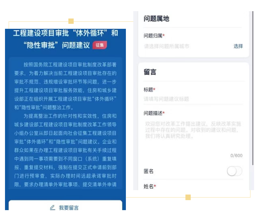 “码”上留言!“工程建设项目审批制度改革”建议和投诉专栏欢迎你来提建议