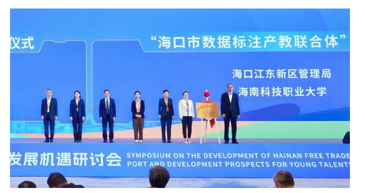 会上,海口江东新区管理局党委书记王明夫为“海口市数据标注产教联合体”及“海南自贸港全国高校人才引进服务基地(海口江东新区-北京航空航天大学站点)”揭牌,标志着江东新区在深化产教融合、精准对接产业人才需求方面取得实质性进展。
