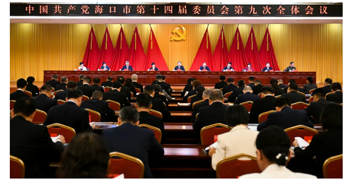 12月11日,中国共产党海口市第十四届委员会第九次全体会议召开,审议通过《中共海口市委关于深入学习贯彻习近平总书记在听取海南自由贸易港建设工作汇报时的重要讲话精神、高标准建设海南自由贸易港核心引领区的实施意见》《中共海口市委关于制定海口市国民经济和社会发展第十五个五年规划的建议》和全会决议。全会号召,全市上下要更加紧密地团结在以习近平同志为核心的党中央周围,在省委、省政府的坚强领导下,牢记嘱托,奋发有为,以“功成不必在我”的精神境界和“功成必定有我”的历史担当,高质量谋划好实施好“十五五”规划,高标准建设海南自贸港核心引领区和“六个之城”,在实现把海南自由贸易港打造成为引领我国新时代对外开放重要门户的战略目标中扛起省会担当。