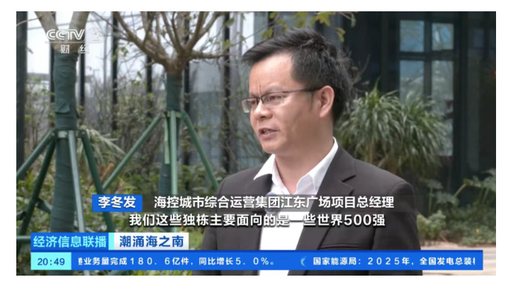 我们这些楼栋(江东广场项目)马上要迎来第一拨的客户入驻。整个项目是由4栋高层,还有21栋多层组合成的。这种组合方式也是为了适应自贸港未来对于总部经济的招商需求,我们这些独栋主要面向的是一些世界500强,包括一些大型企业的总部,高层主要面向的是科创,包括金融服务之类的一些中小型企业。