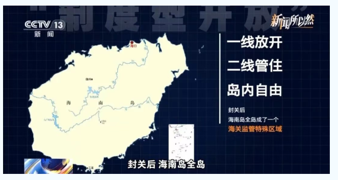 具体到海南自贸港,怎么进行“制度型开放”探索呢?这就要说12月18日的封关了,用十二个字概括,就是“‘一线’放开、‘二线’管住、岛内自由”。