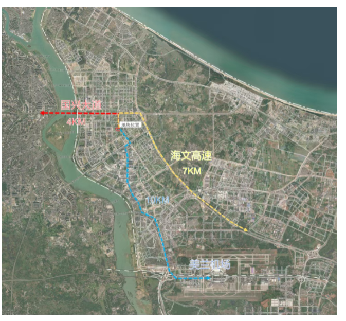 顺达路(2026年贯通)直连国兴大道(车程10分钟),15分钟抵海文高速,20分钟直达美兰机场。