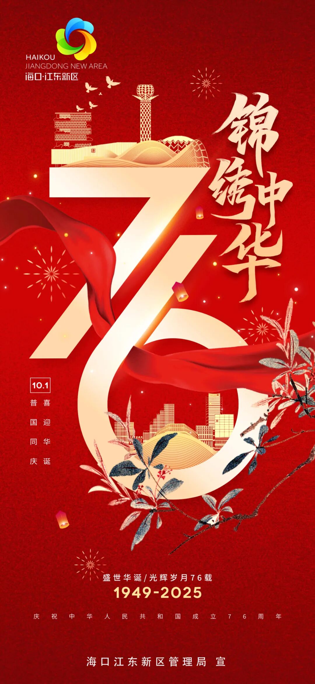 今天我们共同迎来了中华人民共和国76周年华诞此时此刻深沉而炽热的爱国之情在亿万中华儿女的心中澎湃76年风雨兼程76载山河巨变一个坚韧不拔、欣欣向荣的东方大国日益走近世界舞台中央一个不屈不挠、生生不息的古老民族迎来伟大复兴的光明前景目光所至皆为华夏荣光心之所向尽是家国共好梦想召唤,使命催征大道之行,一以贯之转发海报共同祝福伟大祖国:生日快乐,繁荣昌盛!