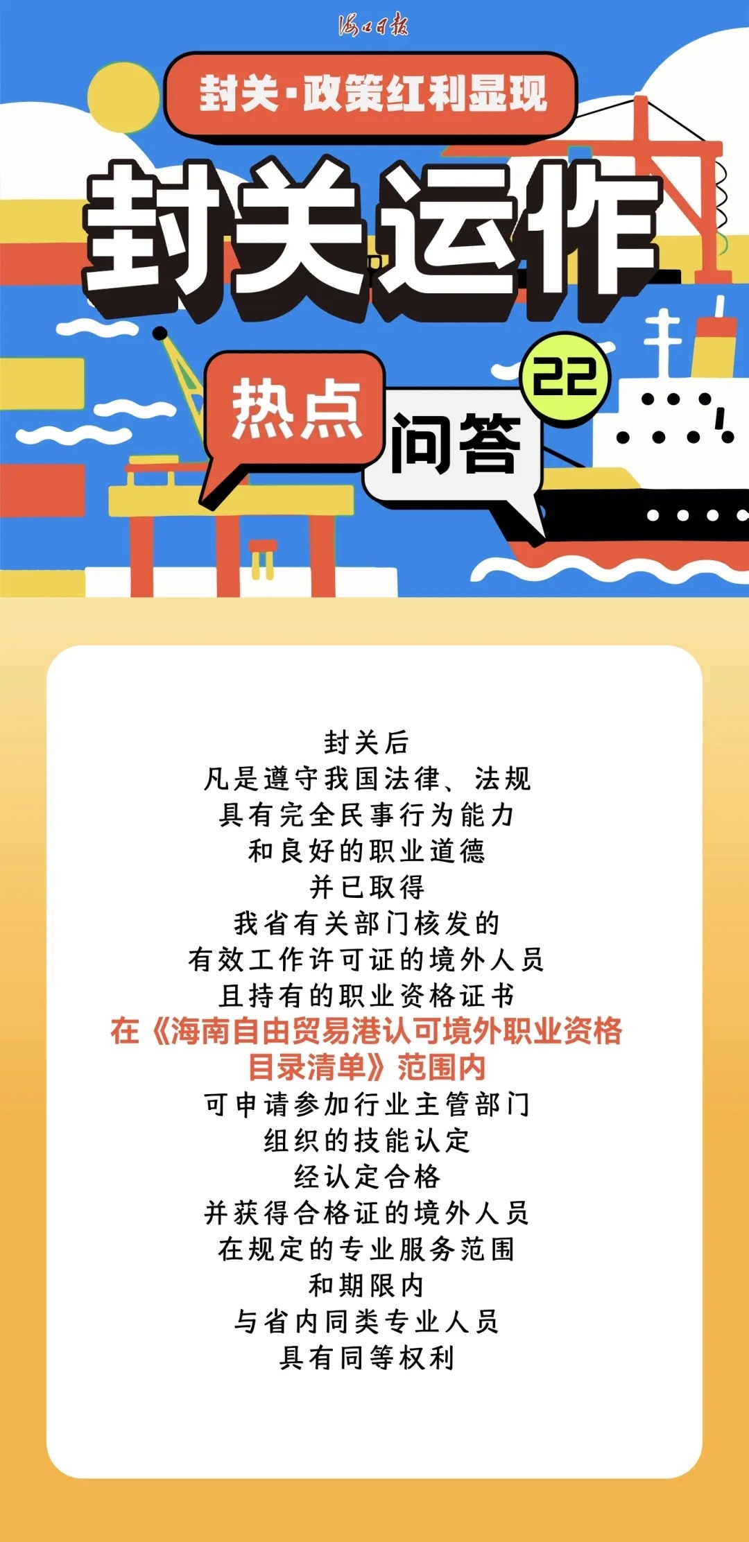 封关后境外人才在海南取得职业资格和职业政策有哪些?