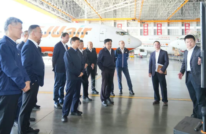冯飞、刘小明一行前往海口美兰空港吉耐斯航空发动机维修工程有限公司、海南自贸港一站式飞机维修产业基地,走进发动机维修车间和维修机库,调研航空发动机保税维修、飞机机体大修、飞机客改货等业务开展情况,强调要强化创新驱动,加强业务融合,拓展服务范围,发挥链主龙头企业带动作用,加快形成发动机、航电系统等核心部件的深度维修能力,打造具有国际竞争力的航空保税维修产业集群。