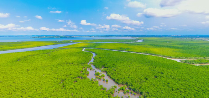 江东新区充分发挥生态资源优势,多措并举提升固碳增汇能力。深化东寨港红树林碳汇交易实践,通过量化并交易红树林吸收的二氧化碳,将生态价值转化为经济效益,反哺红树林保护与修复;实施湿地及红树林提升工程、海洋微生物增汇工程、生物碳封存示范项目,持续提升生态系统碳汇能力,筑牢生态安全屏障与碳汇基底。