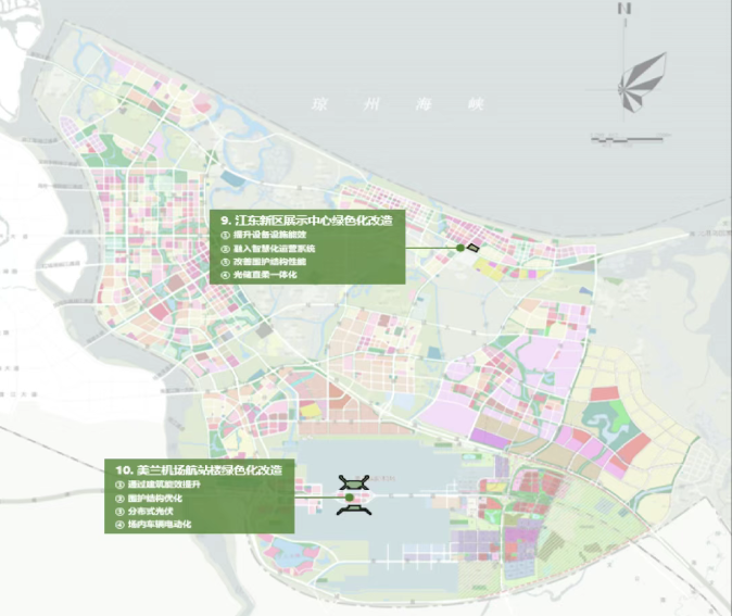 江东新区以绿色化、智慧化改造为抓手,推动既有建筑实现节能降碳升级。江东新区展示中心通过设备能效提升、智慧化运营系统融入、围护结构性能改善、光储直柔一体化建设四大举措,全力打造产能建筑、负碳建筑示范;美兰机场航站楼实施建筑能效提升、围护结构优化、分布式光伏建设、场内车辆电动化替代等改造,加快建成绿色低碳航站楼标杆,以建筑节能助力全域零碳建设。