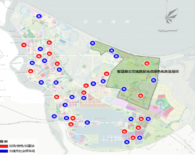 江东新区以“智慧+绿色”为核心,加快打造现代化低碳交通体系。在生态CBD、滨海红树林片区和大学城片区布局智慧微公交线路,投运智慧微公交车辆,同步对沿线公交站点进行光伏设施、智慧屏幕、多功能座椅等改造,并规划远期拓展至江东新区全域;推进智慧物流系统建设,投运多类型清洁能源货运车辆,打造智慧化货运线路,配套建设充换电及加氢站;对园区18处加油站进行升级改造,建成集加油、加气、充换电、加氢于一体的综合能源补给站,实现交通领域清洁低碳转型。