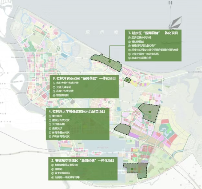 生态CBD、零碳航空物流区等四大片区同步推进 “源网荷储” 一体化项目,涵盖集中供冷站、储能站、智能微电网、虚拟电厂、分布式光伏、光储充一体化停车场等多个子项目,实现绿色能源就地生产、就地消纳;