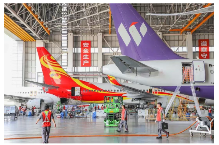 “基地自2022年投产以来,截至目前已完成超2400架次飞机维修、超280架次整机喷涂及6.1万件航空零部件维修。”