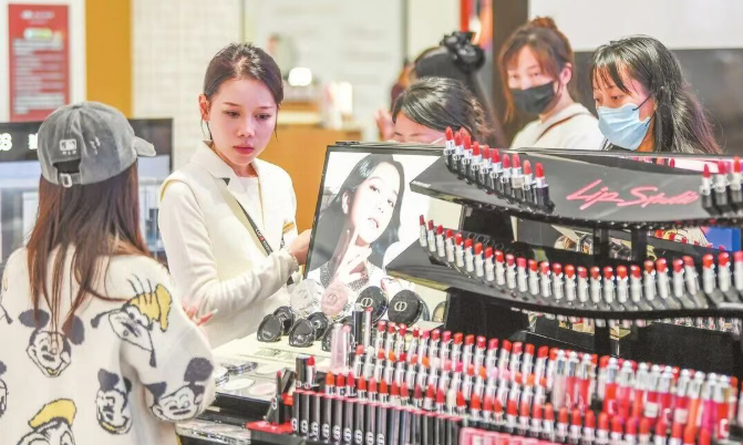 1月14日,cdf海口日月广场免税店内,消费者在挑选免税化妆品。海口市融媒体中心记者 康登淋 摄