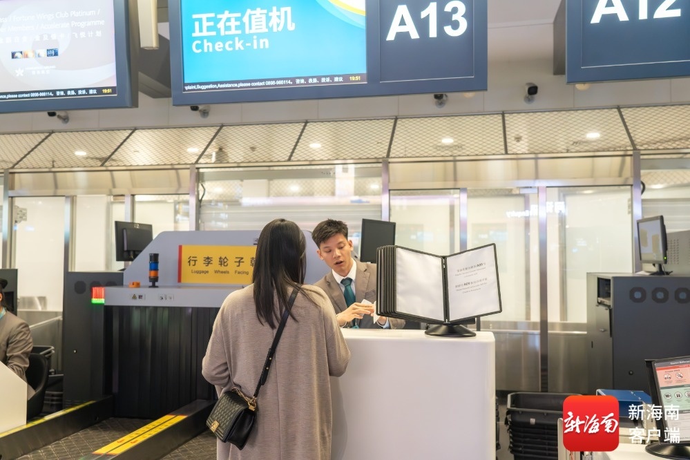 工作人员为旅客办理值机手续。海口美兰机场供图