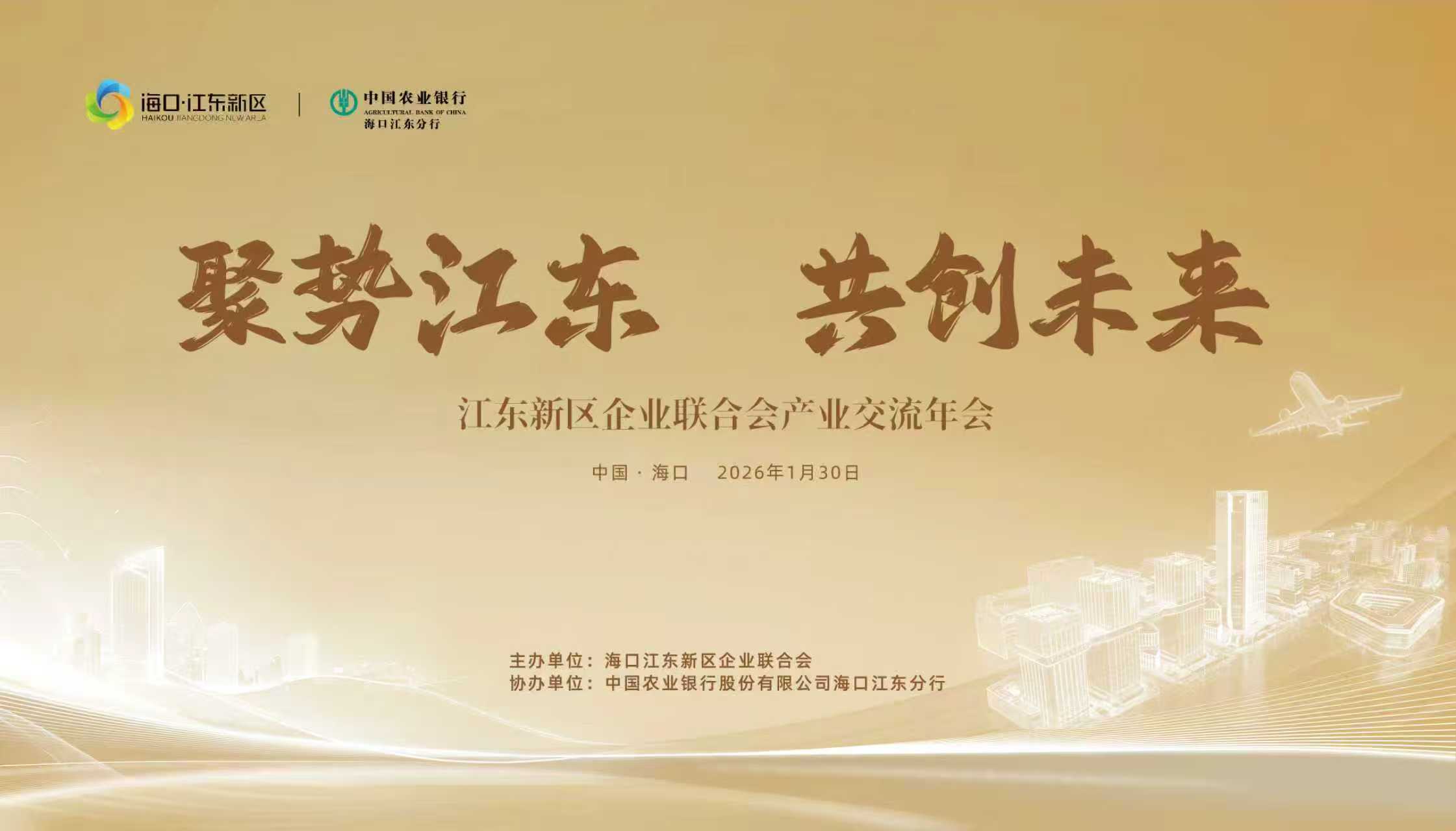 由海口江东新区企业联合会主办、中国农业银行股份有限公司海口江东分行协办的“聚势江东・共创未来——2026年江东新区企业联合会产业交流年会”,将于1月30日在海口绿发希尔顿酒店举行。