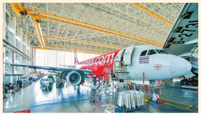 位于海口江东新区临空经济区的海南自贸港一站式飞机维修产业基地定检机库,一架来自泰国的飞机正在进行零部件更换。海口市融媒体中心记者 苏弼坤 摄