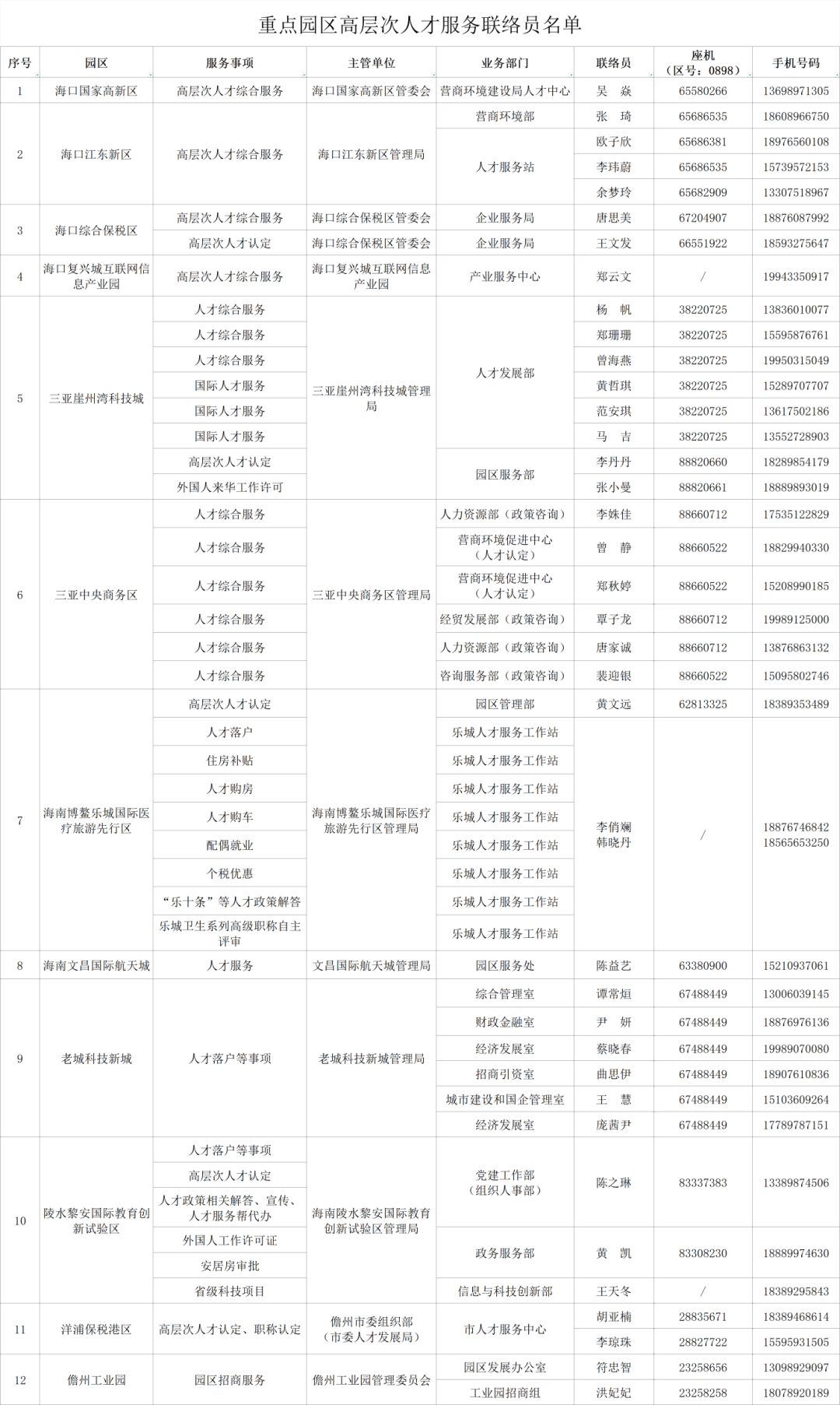 根据《海南省高层次人才服务专员管理办法》(琼人才局通〔2020〕25号)要求,现将2026年度海南省高层次人才服务联络员名单公布如下(见附件)。