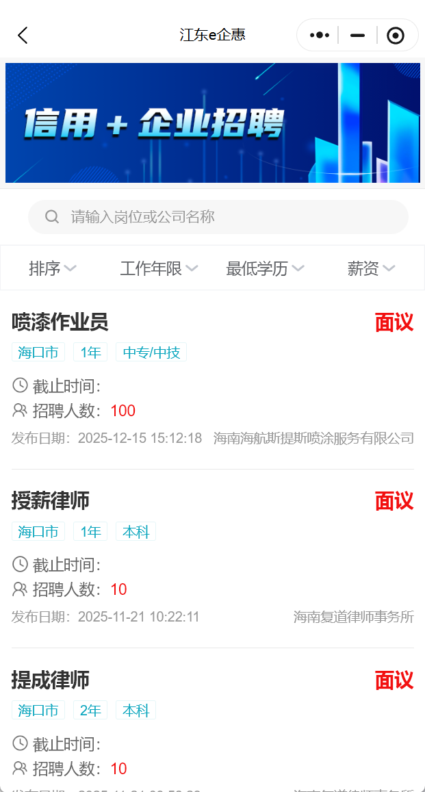 聚焦企业招聘痛点,江东新区将信用优级企业资质作为招聘重要背书,向求职者全面展示企业诚信经营形象,增强企业人才吸引力。同时,主动对接优质招聘资源,为信用优级企业搭建人才对接桥梁,助力企业高效招引匹配人才、集聚发展动能,实现“政策享红利、人才聚江东”的双向共赢。