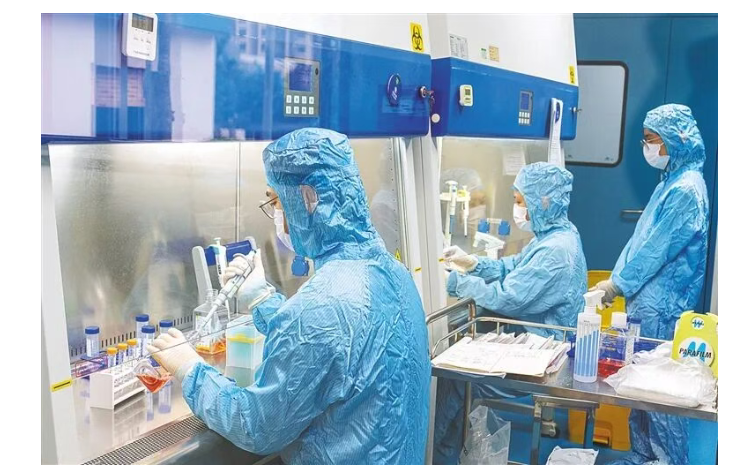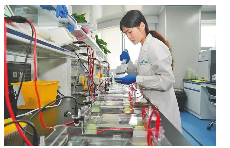 海口高新区药谷工业园的海南苏生生物科技有限公司研发实验室内,研发人员正在测试。海南日报全媒体记者 袁琛 摄