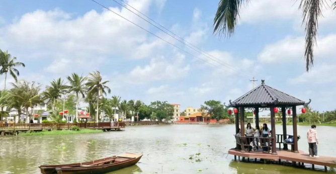 依托紧邻东寨港红树林的地理优势,农庄还开通了定制游服务。工作人员开着观光车,带领游客前往红树林游玩,一路讲解科普知识,推荐周边游玩路线,让游客深度体验演丰的自然与人文之美。