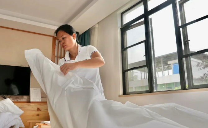 “我以前靠务农为生,现在从事农庄的保洁工作,月薪3000多元,既能照顾家庭,又能实现增收。”