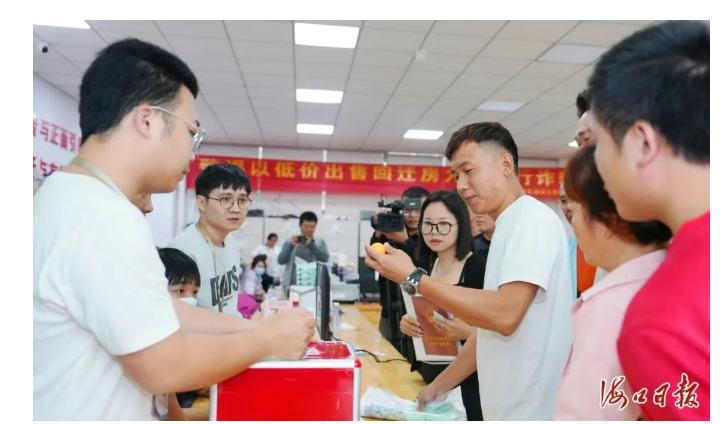 “请大家有序排队抽签,将材料送到审核处,按顺序进行选房。”3月20日,海口江东新区春晖园组团回迁房选房工作正式启动,在工作人员的引导下,村民们排队依次抽签选房。