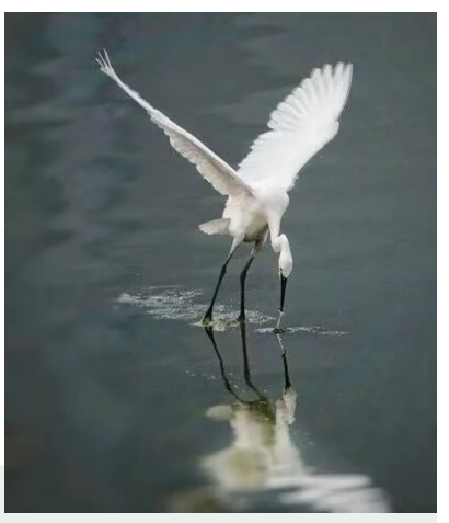 白鹭振翅划过水面