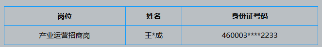 根据《海口江东新区管理局2026年公开招聘实施方案》,因应聘人员自愿放弃等原因产生的空缺,按照面试成绩从高分到低分依次递补。现将产业运营招商岗进入匹配度考察的递补人选名单公布如下: